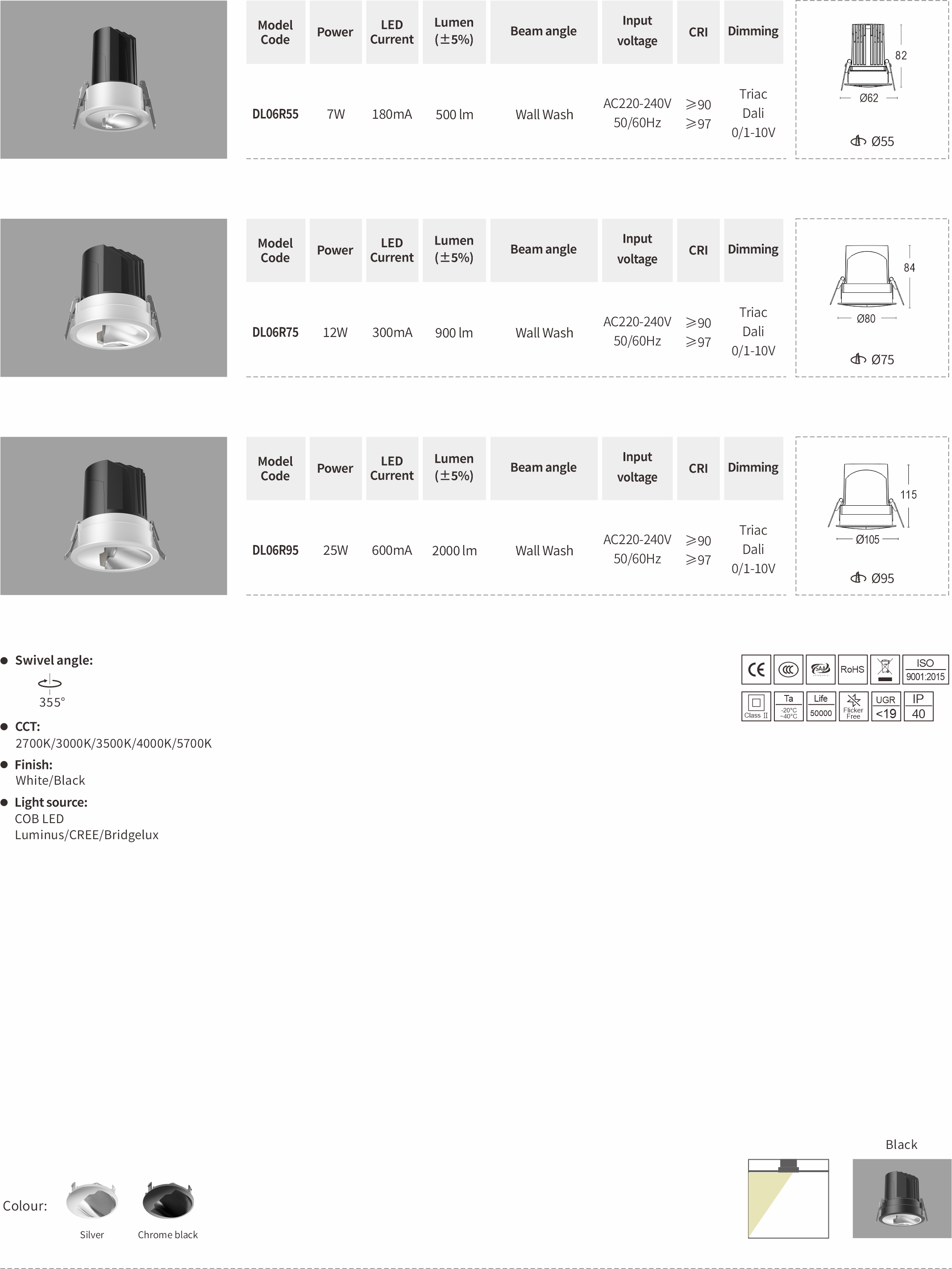 ●DL06RT55 7W / DL06RT75 12W / DL06RT95 25W