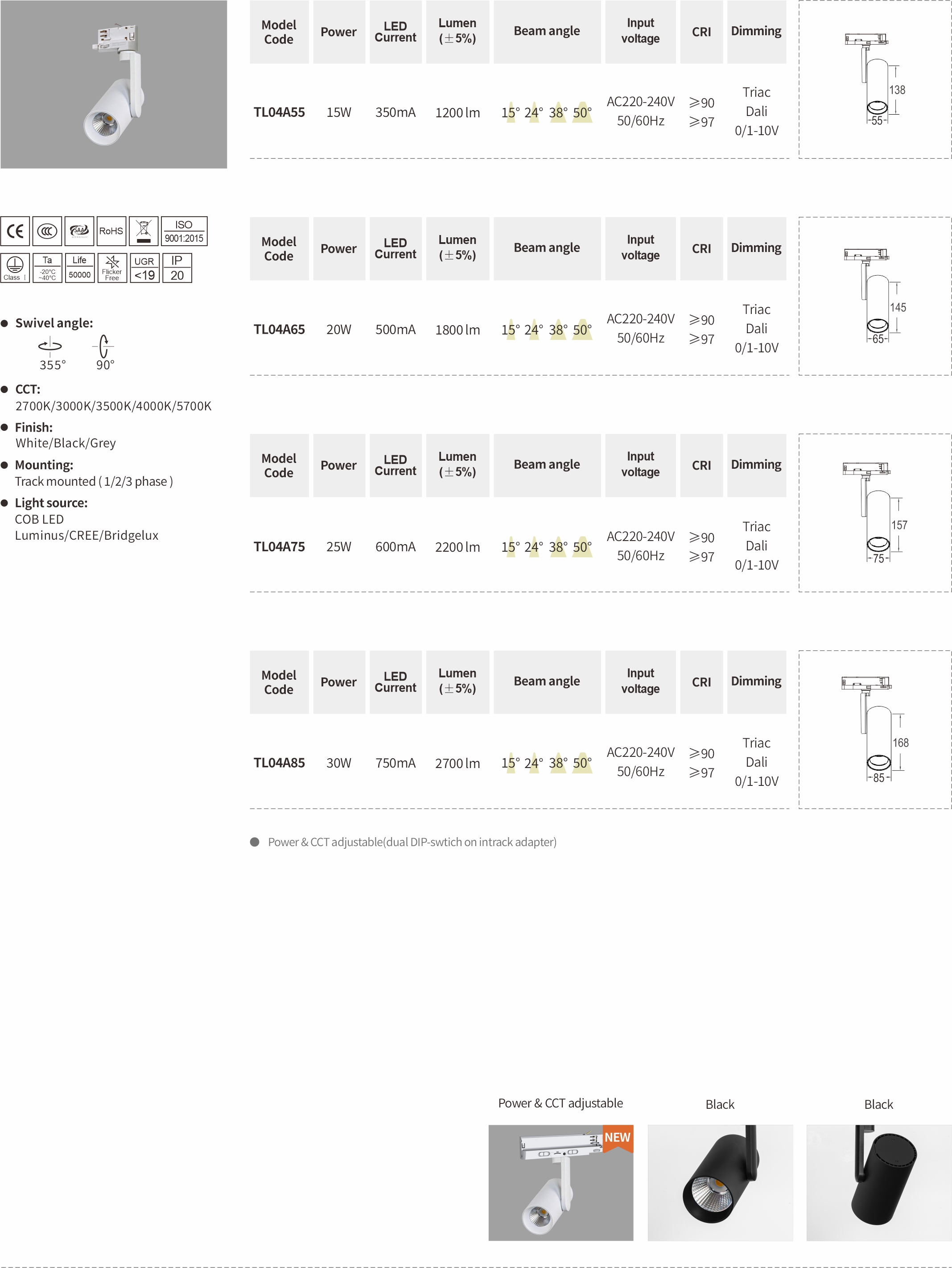 Flora Series Is With Built-in Driver Or Intrack Adapter Adopts Top Brand Chips Providing Adjustable Lighting Orientation With 355° In Horizontal Direction And 90 In Vertical Direction