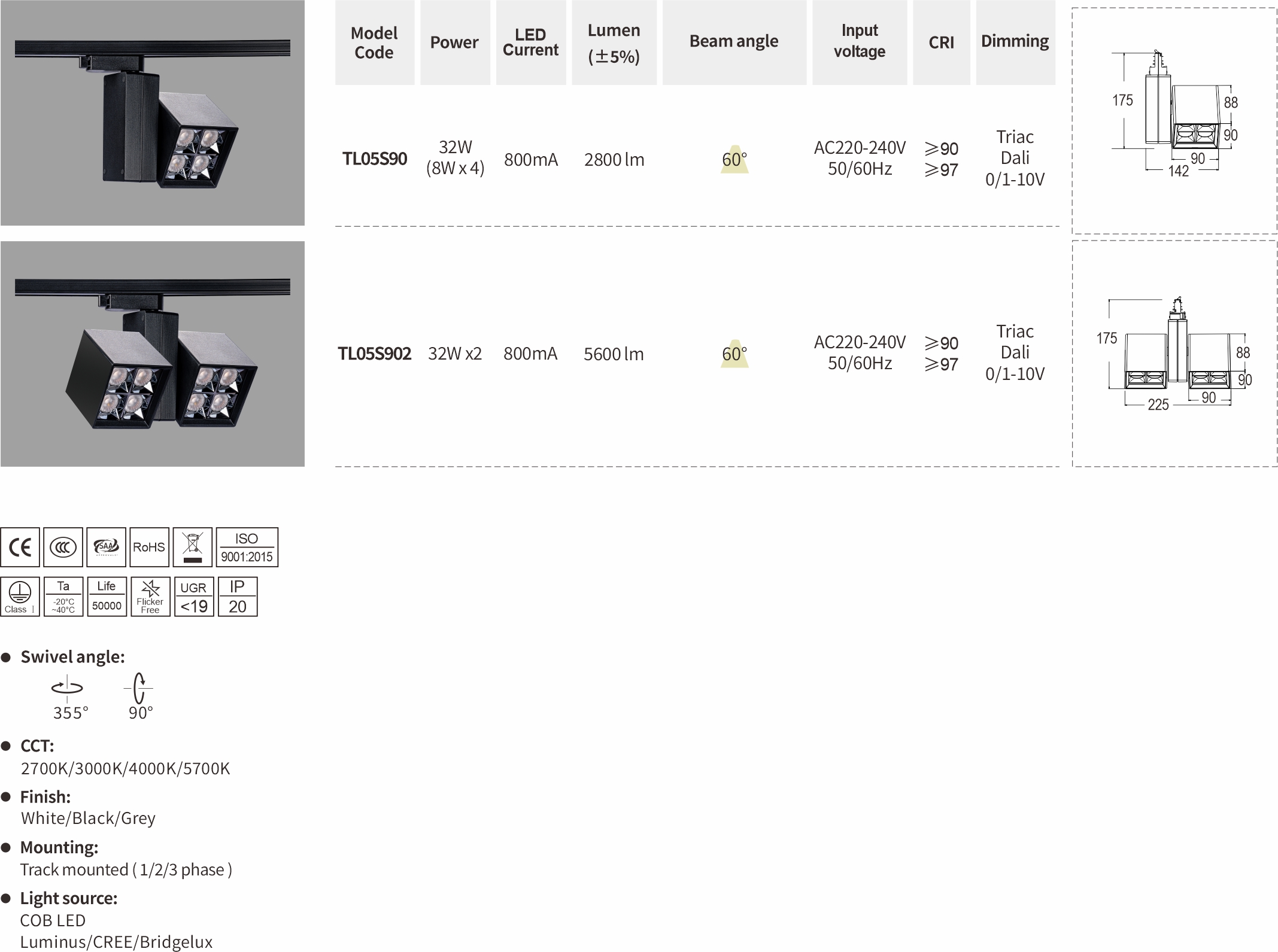 Cube Series Adopts Brand Cob Led And Die-cast Aluminium Housing Provides Excellent Heat Dissipation.Sepcial Design 1 Head Or 2 Heads In Square Appearance To Delivers Uniform Light Spot